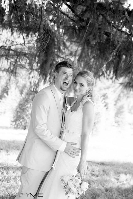 For my bridal gown I worked with a wonderful studio in Los Angeles, L’ezu, who helped me turn my sketch into a reality. The dress is made of hand ruched silk netting with veiled vintage Chantilly lace appliquéd to the bodice and neckline. Textural beauty was important for me in the design of my dress and I also knew that I wanted a gown that was not strapless so I could dance the night away without a care! When the party really got started, I changed into an easy flowing BCBG maxi dress in silk crinkle chiffon — since I wasn’t worried about getting the dress dirty I was able to cuddle up next to our fire pit with my hubby and we even roasted a s’more.